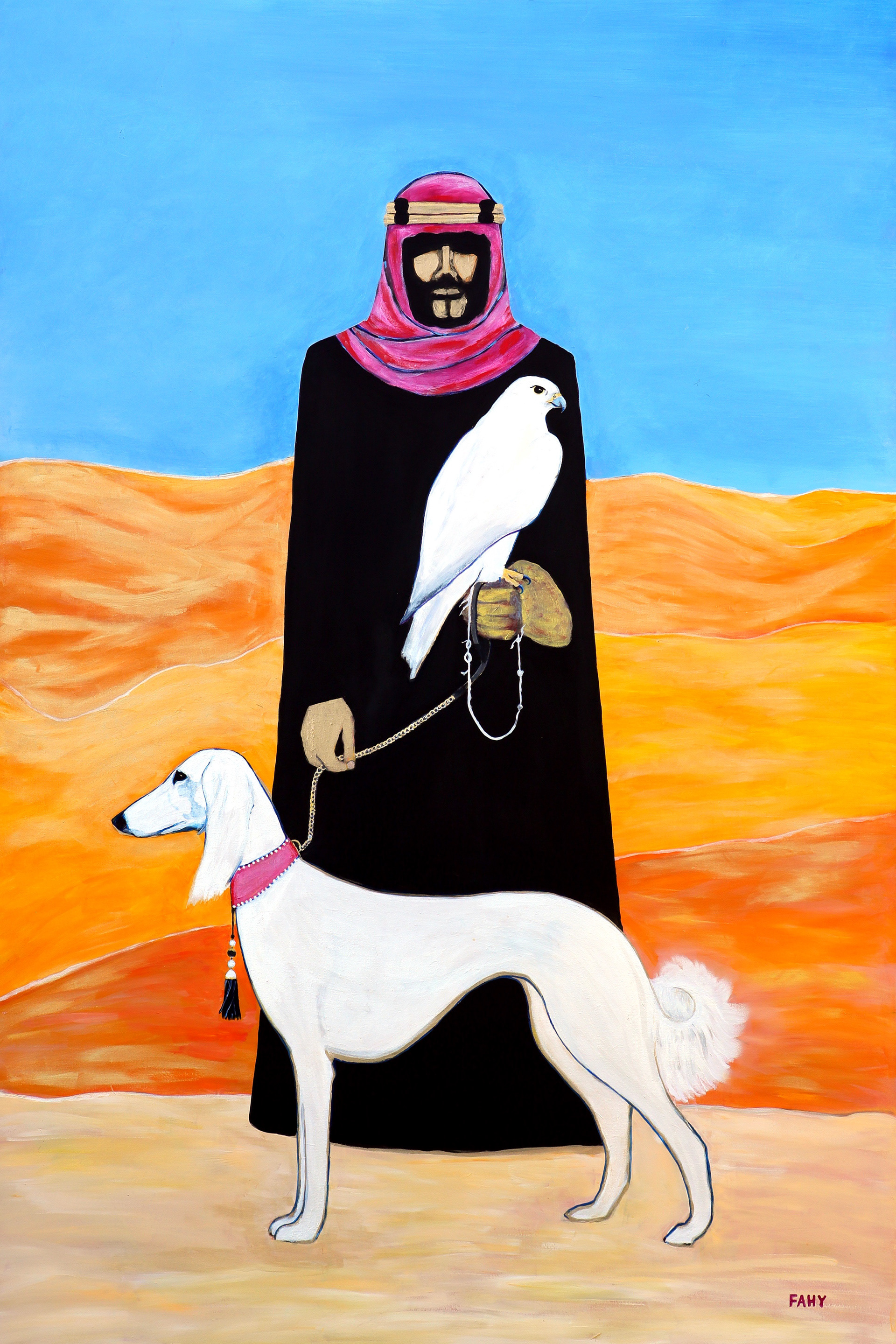 Bedouin Hunter with Saluki and White Gyrfalcon