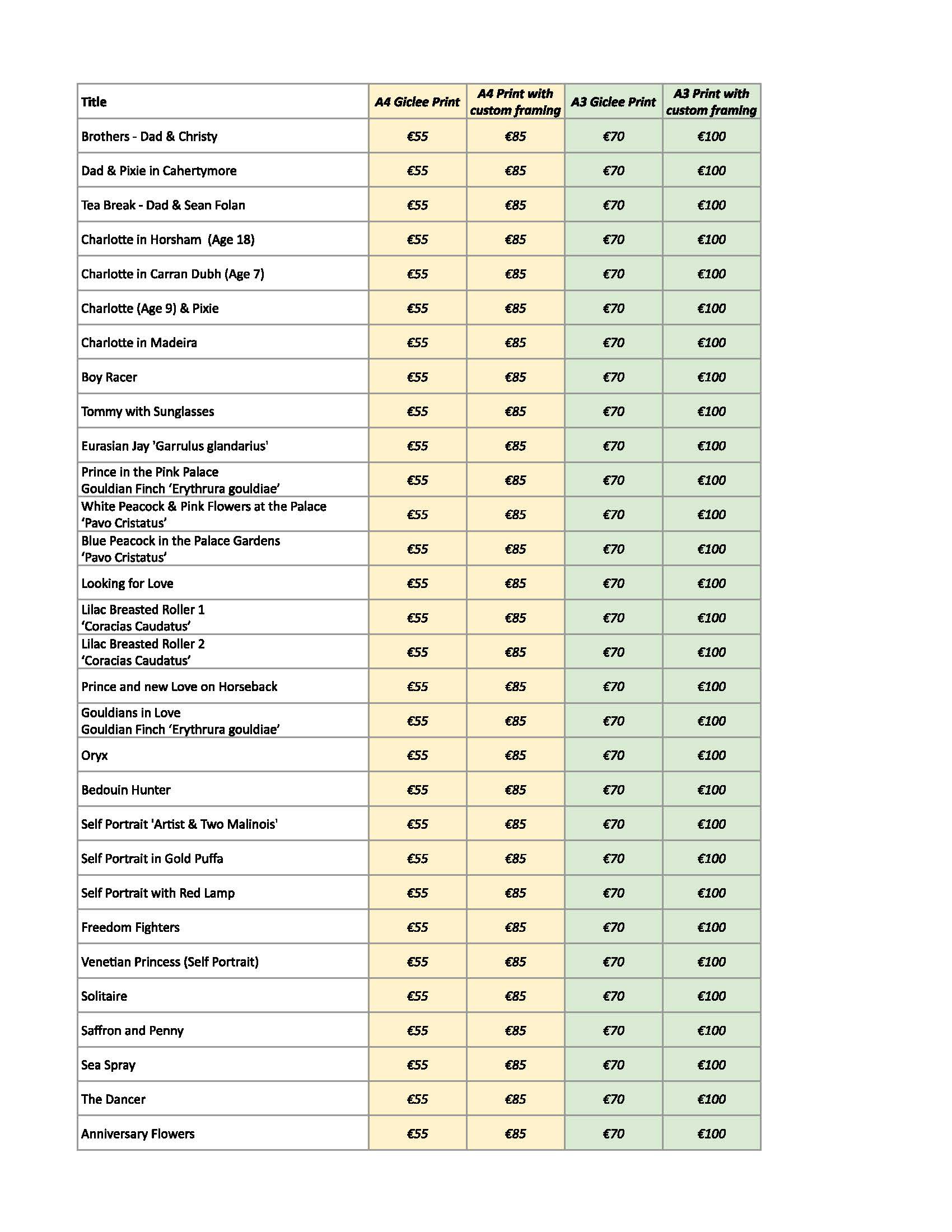 A pricelist is included below for a selection of sizes.